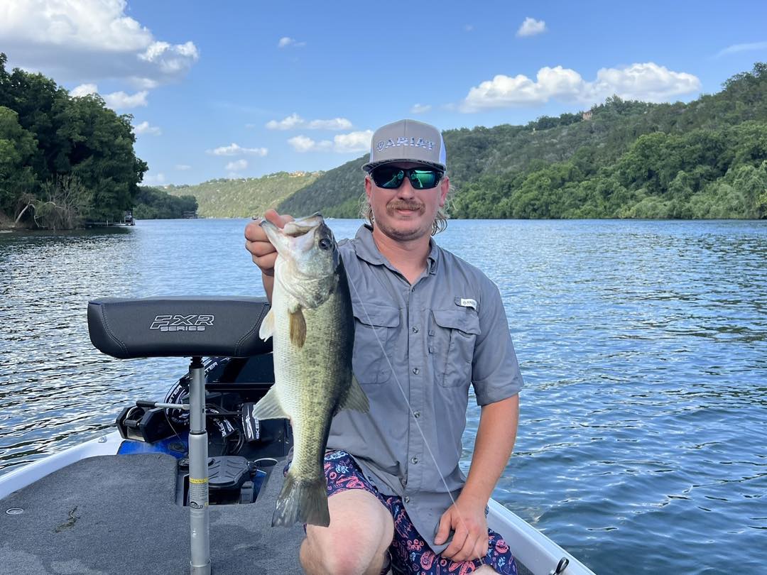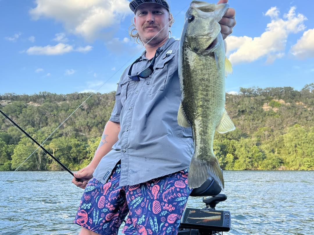 Largemouth Bass: The crown jewel of Lake Travis and Lake Austin, these bucket-mouthed bruisers are what dreams are made of. They love to hang around submerged brush and drop-offs, waiting to ambush their prey. Spring and fall are prime times to land a wall-hanger, but don't count out a summer night bite for some serious action. Anglers come from all over to tangle with our Largemouth - they grow big here, and they fight hard.